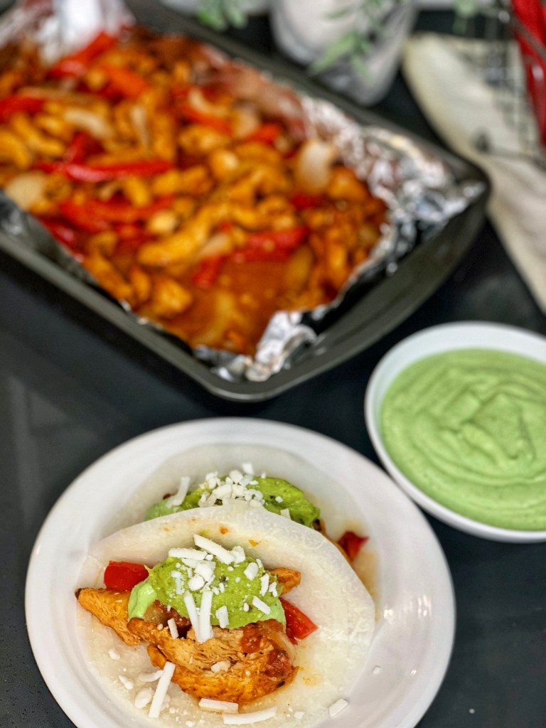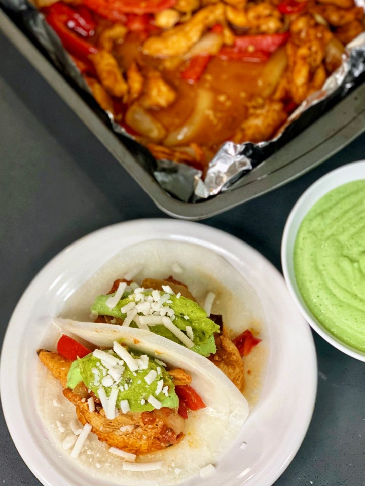 One Pan Chicken Fajitas w/ Cilantro Lime Crema (Keto, Gluten & Dairy Free)